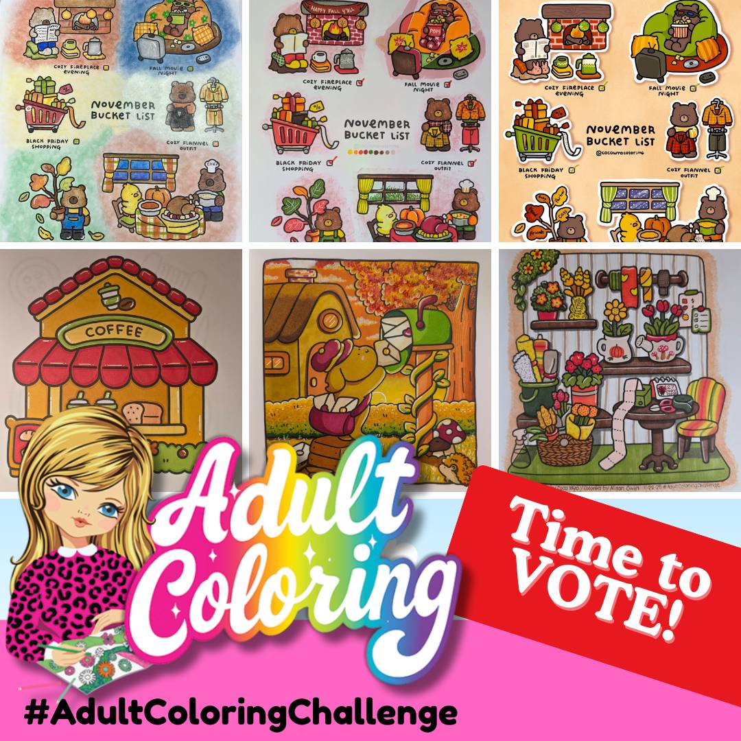 Last week we shared a free coloring page from Coco Wyo along with a fun autumn palette to inspire your creativity. Now it’s time to vote for your favorites!