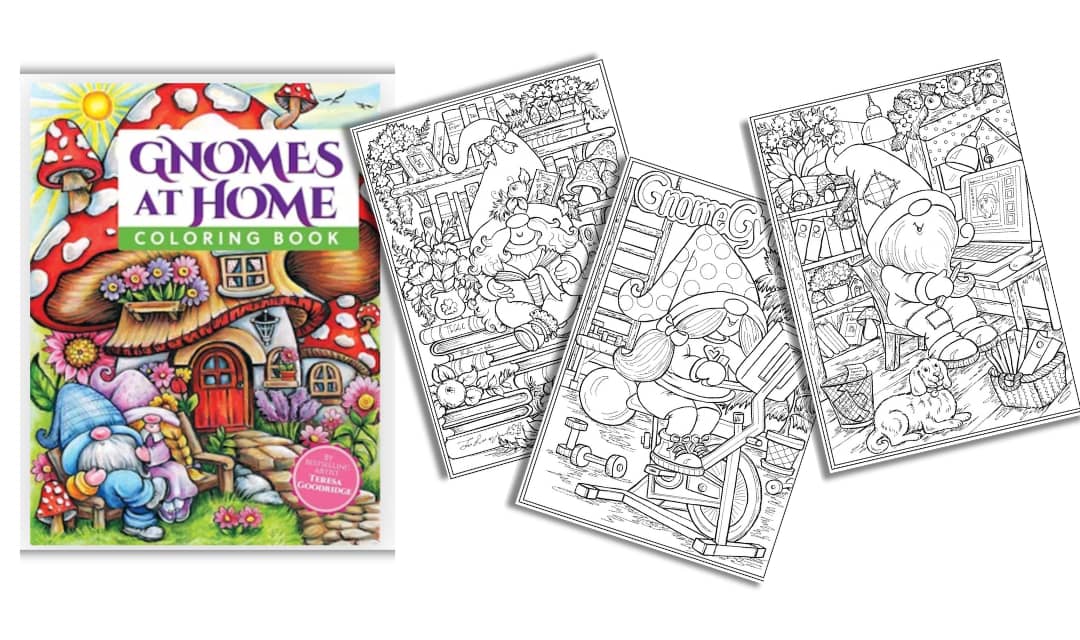 This week, we’re celebrating the charming world of Gnomes at Home by fan-favorite illustrator Teresa Goodridge — published by Dover Publications! This delightful book is filled with adorable scenes of busy little gnomes enjoying everyday adventures, from gardening and crafting to relaxing in their cozy woodland homes. With beautifully detailed artwork and tons of whimsical touches, it’s perfect for anyone who loves cute characters and calming coloring time.